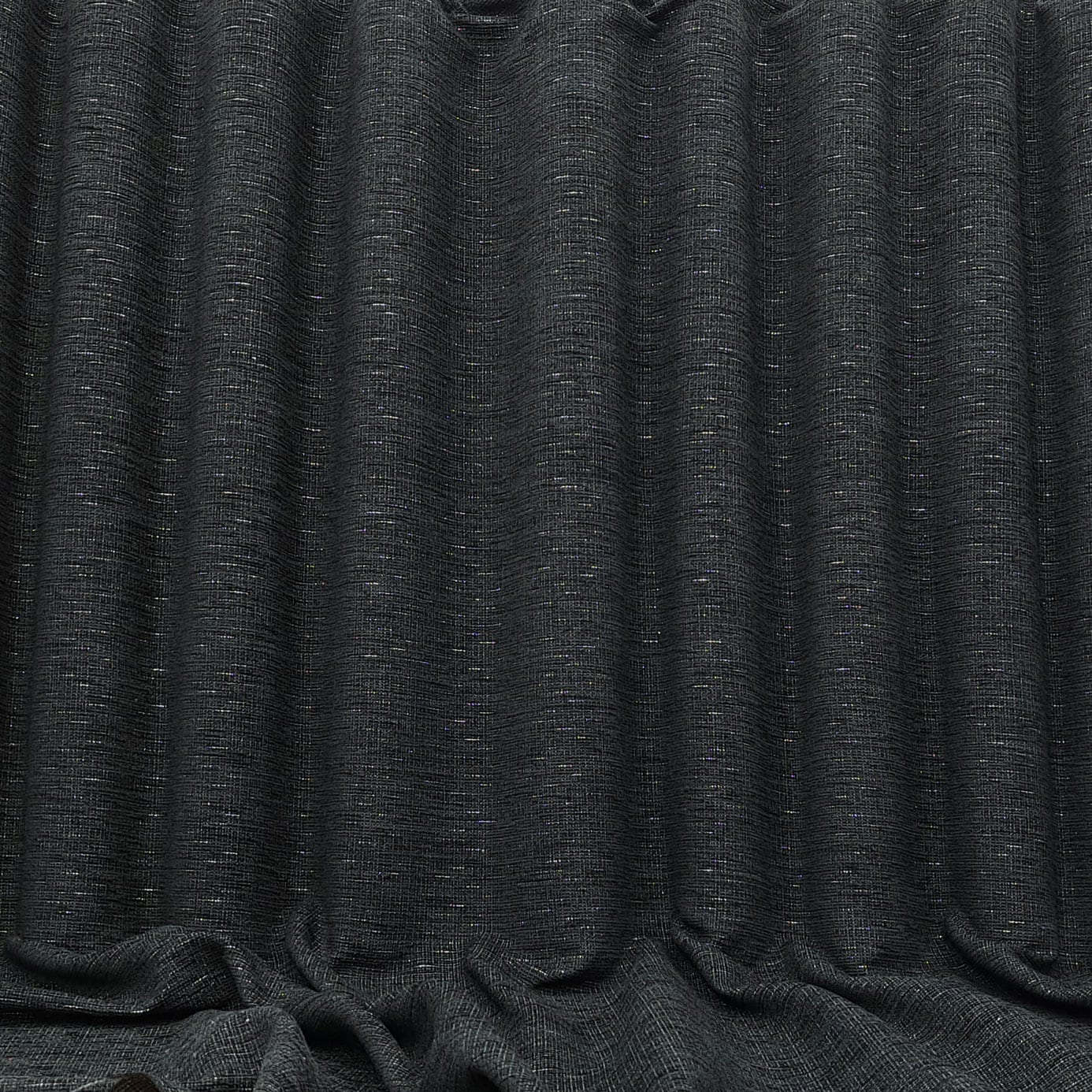 Aurora Fabric in colour 15 Black. An affordable soft chenille fabric featuring subtle glimses of woven metallic yarns, shimmering like distant stars in the dark night sky. Suitable for made to measure curtains, roman blinds and accessories.