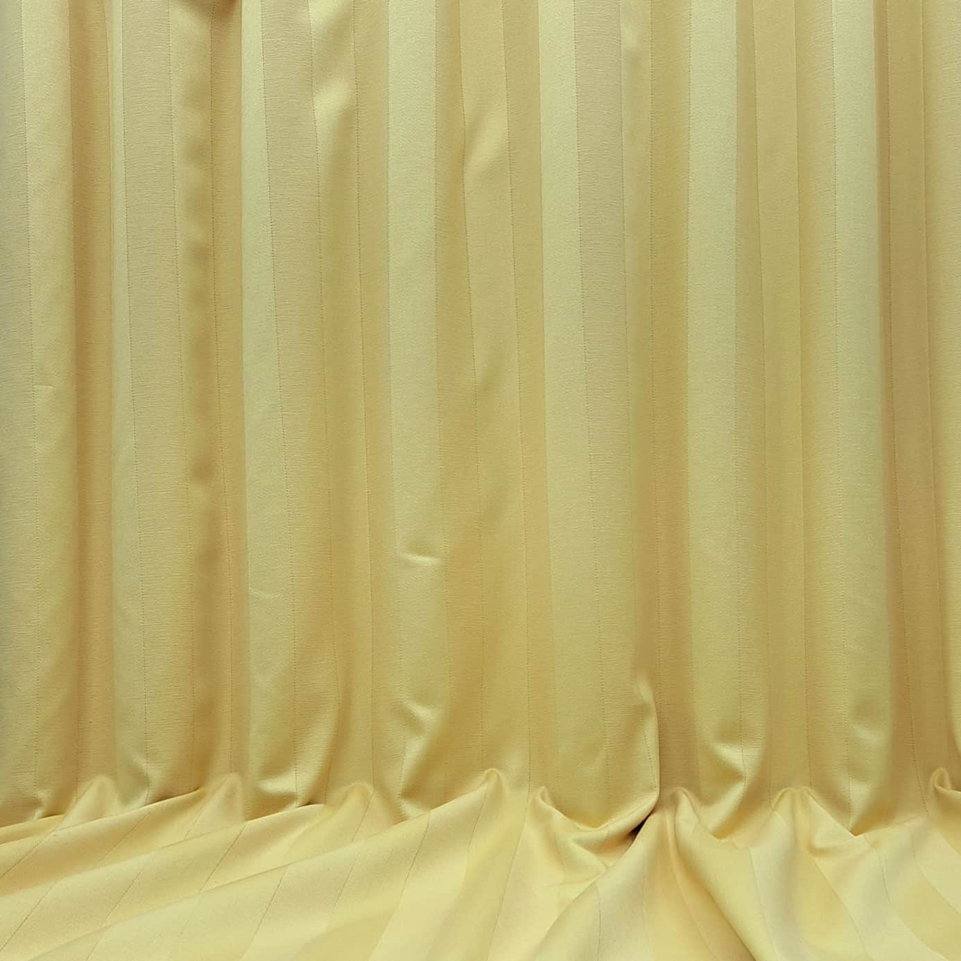 Devon Fabric in colour Gold, SEDEV001. A very simplistic design with vertical woven jacquard stripes in sublet tone changes. This 100% cotton fabric is suitable for made to measure curtains, roman blinds and accessories.